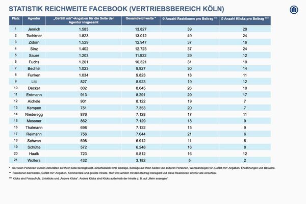 Statistik zur Reichweite von Facebook (Vertrieb Köln)