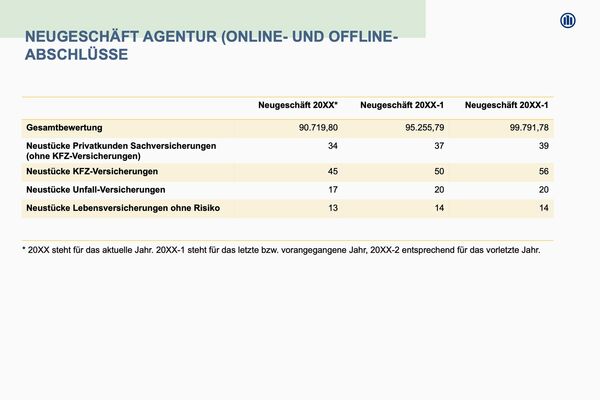 Neugeschäft der Agentur (Online- & Offline-Abschlüsse)